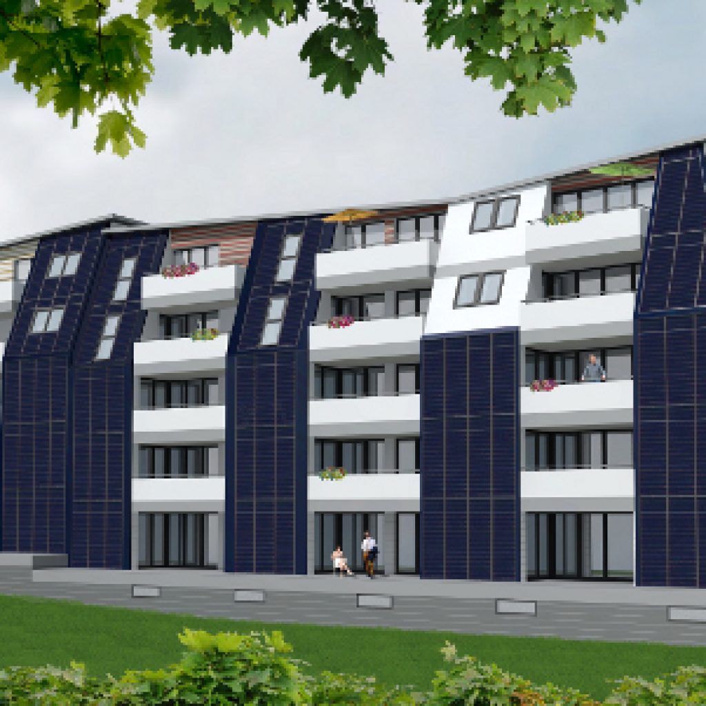 Am Rande der urbanen Aktivsonnenhaussiedlung „Solar-Areal am Schloss“ in Chemnitz entsteht seit einigen Monaten eine Eigentumswohnanlage, die in Art und Größe ihresgleichen sucht: Das Mehrfamilienhaus „Solardomizil I“ ist ein großes Aktivsonnenhaus, das durch gekonnte Solararchitektur und einen massiven Solarspeicher mit 200 m³ Fassungsvermögen ca. 50 % des Bedarfs der Bewohner für Heizung und Warmwasser deckt. Heizkosten lassen sich schlicht und einfach halbieren. Sämtliche Wohnungen wurden in kurzer Zeit verkauft. Nun entsteht direkt daneben in zentraler, aber ruhiger Top-Lage mit Blick über den Schlossteich der zweite Teil des Bauprojektes. Das „Solardomizil II“ bietet auf ca. 1.770 m² weitere 18 modern ausgestattete Wohneinheiten mit Größen von 62 m² bis 174 m². Selbstverständlich gehören Tiefgaragen und ein Lift zur Ausstattung des Gebäudes.
